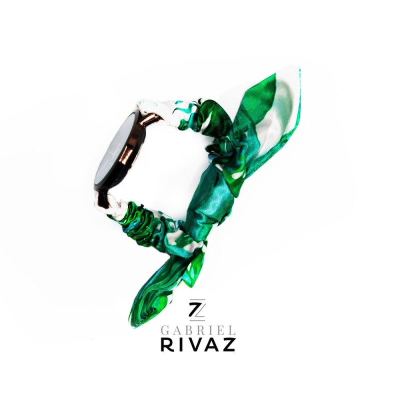 Combinada con los paisajes paradisiacos que nos hacen viajar, ¡esta pulsera de seda con motivo vegetal Gabriel RIVAZ sabrá resaltar tu muñeca durante tus vacaciones! Elige una pulsera de seda Gabriel Rivaz que sabrá resaltar tu muñeca.  Pulsera fabricada con una seda increíblemente suave y cómoda de llevar. Se adapta a todas las muñecas. Seda de 4,5mm de grosor para mantener la forma Herramienta profesional y robusta facilitada para retirar las hebillas fácilmente. Ya no necesitas ir al relojero. Hebillas de calidad (1.8mm de grosor) con pulsadores para una instalación fácil y muy rápida sin herramientas (de regalo). Instalación de la pulsera en menos de un minuto – Tuto disponible en la pestaña “cambiar su pulsera”