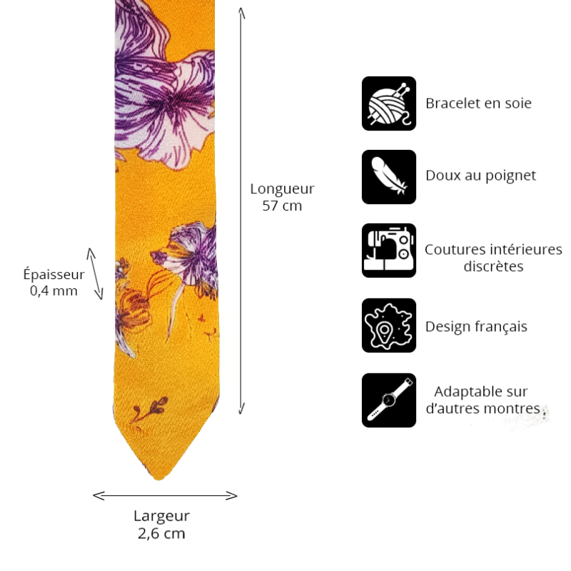 Combinada con los paisajes paradisiacos que nos hacen viajar, ¡esta pulsera de seda con motivo vegetal Gabriel RIVAZ sabrá resaltar tu muñeca durante tus vacaciones! Elige una pulsera de Gabriel Rivaz que sabrá resaltar tu muñeca. Pulsera fabricada con una seda increíblemente suave y cómoda de llevar. Se adapta a todas las muñecas. Herramienta profesional y robusta facilitada para retirar las hebillas fácilmente. Ya no necesitas ir al relojero. Hebillas de calidad (1.8mm de grosor) con pulsadores para una instalación fácil y muy rápida sin herramientas (de regalo). Instalación de la pulsera en menos de un minuto – Tuto disponible en la pestaña “cambiar su pulsera”